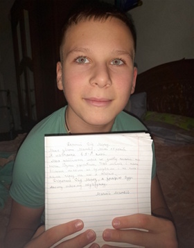 Некоторое время назад у Матвея начались проблемы со здоровьем. У него обнаружено очень редкое генетическое заболевание. При обследовании выявлена киста в задней части мозжечка, накопление железа, затруднена ходьба. Матвей живет в Украине. Получить лечение и даже найти необходимое ему лекарство сейчас очень сложно. В письме Деду Морозу Матвей написал о своем сокровенном желании – выздороветь…